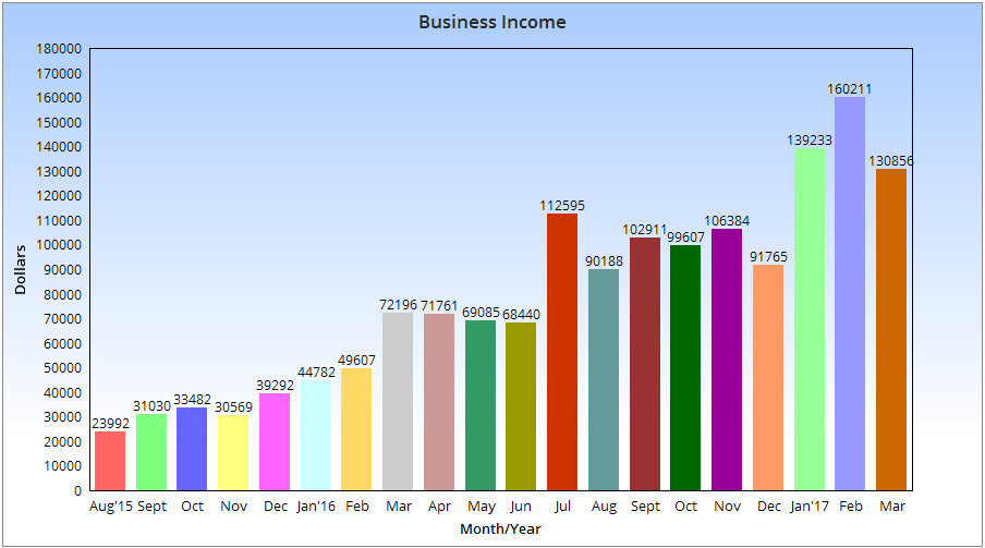 - Total income in March of 2017: $130,856